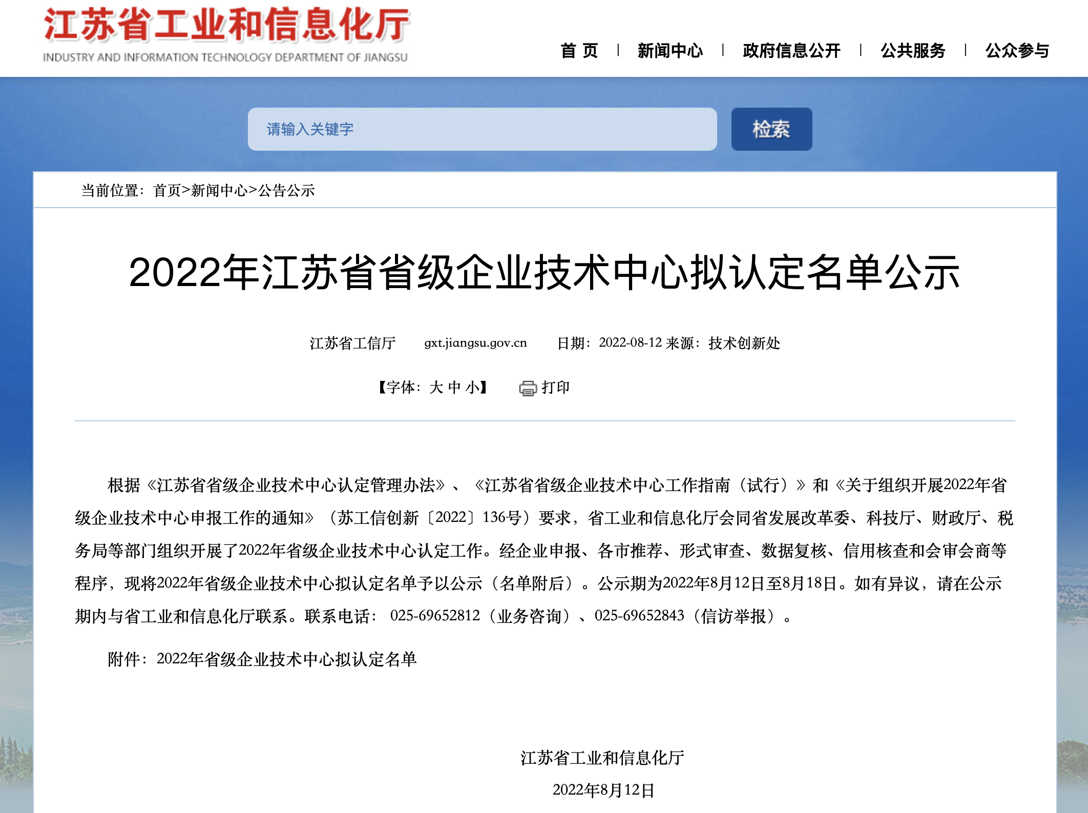 近日,江苏省工信厅发布《2022年江苏省省级企业技术中心拟认定名单公示》,无锡紫杉药业股份有限公司企业技术中心成功入选。关于企业技术中心企业技术中心,是指企业根据市场竞争需要设立的技术研发与创新机构,负责…
