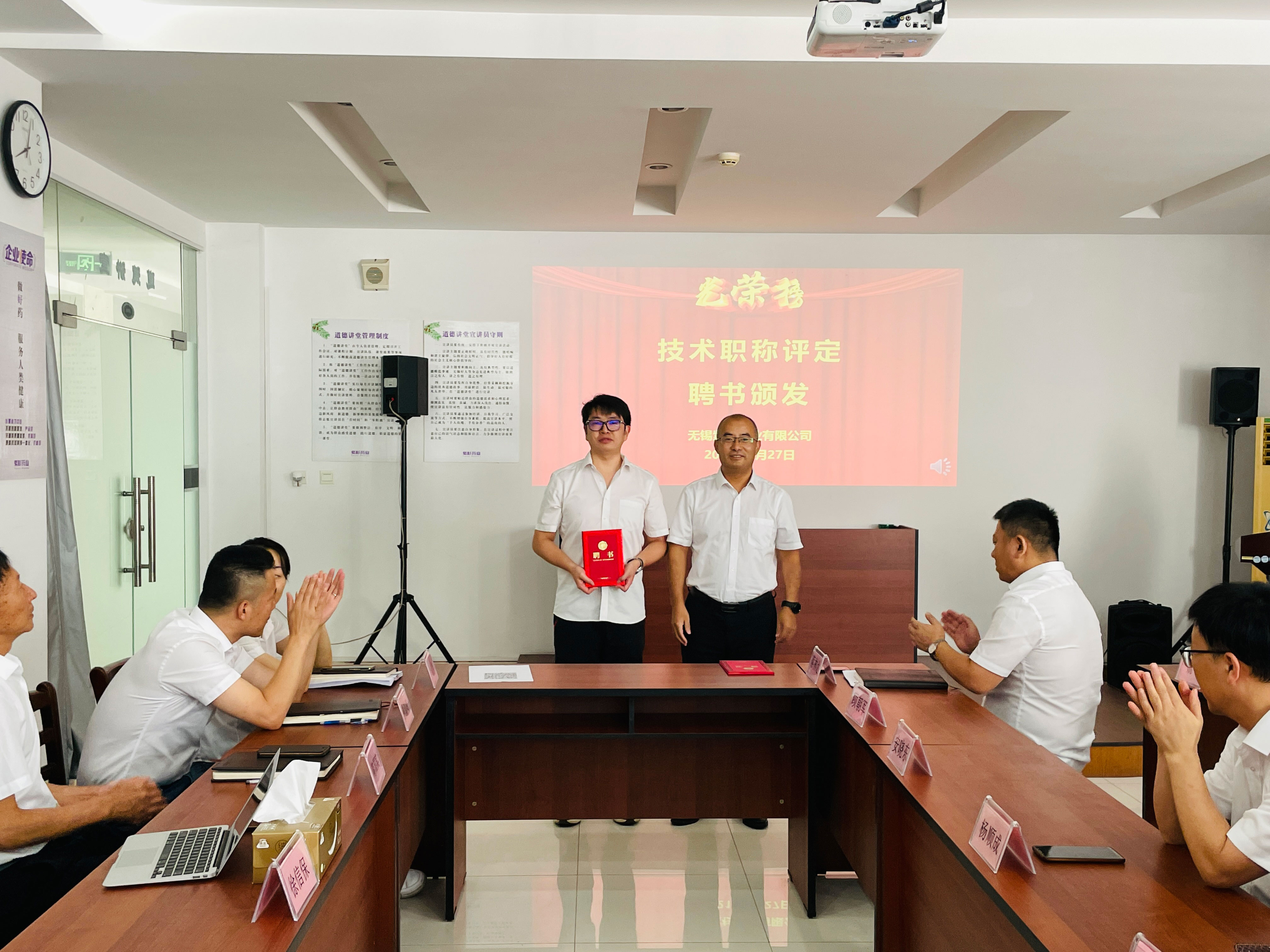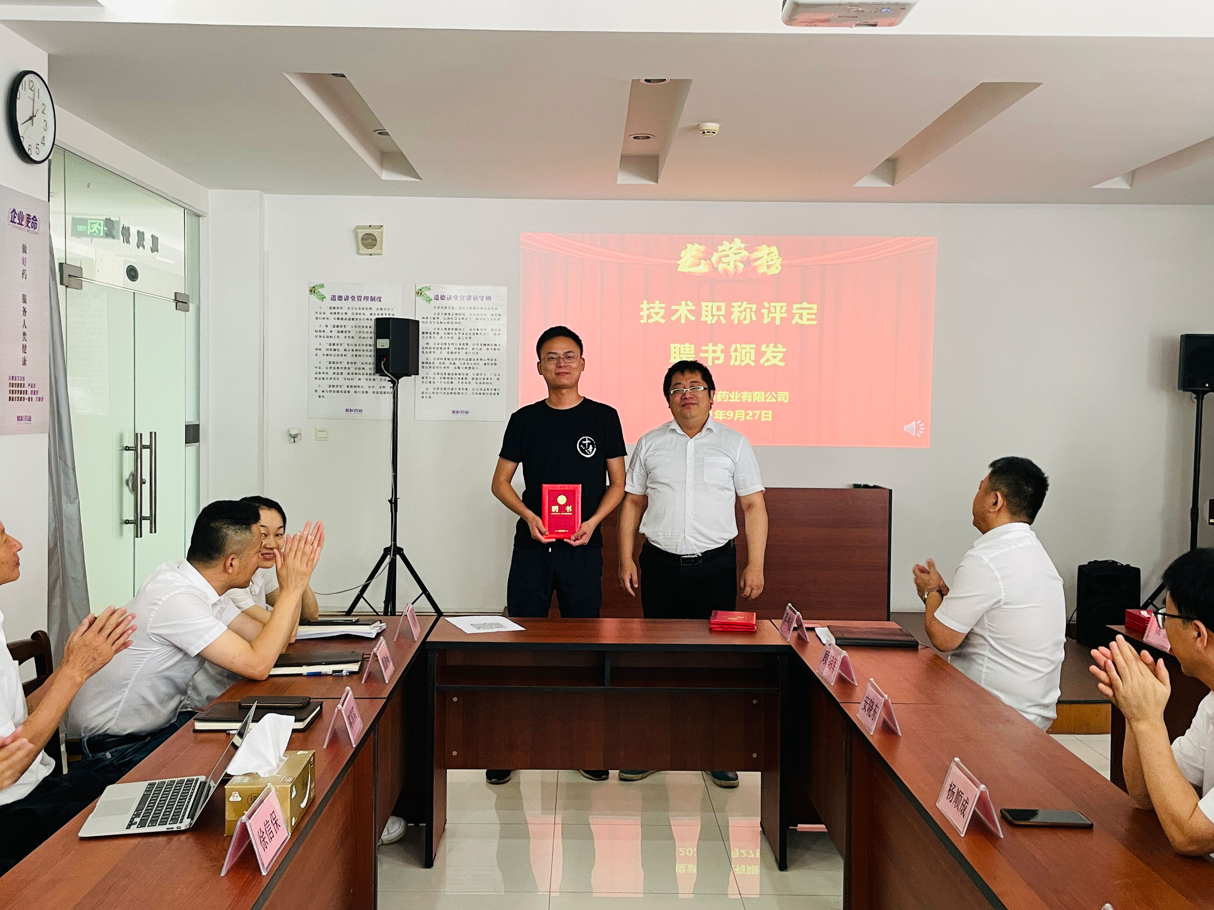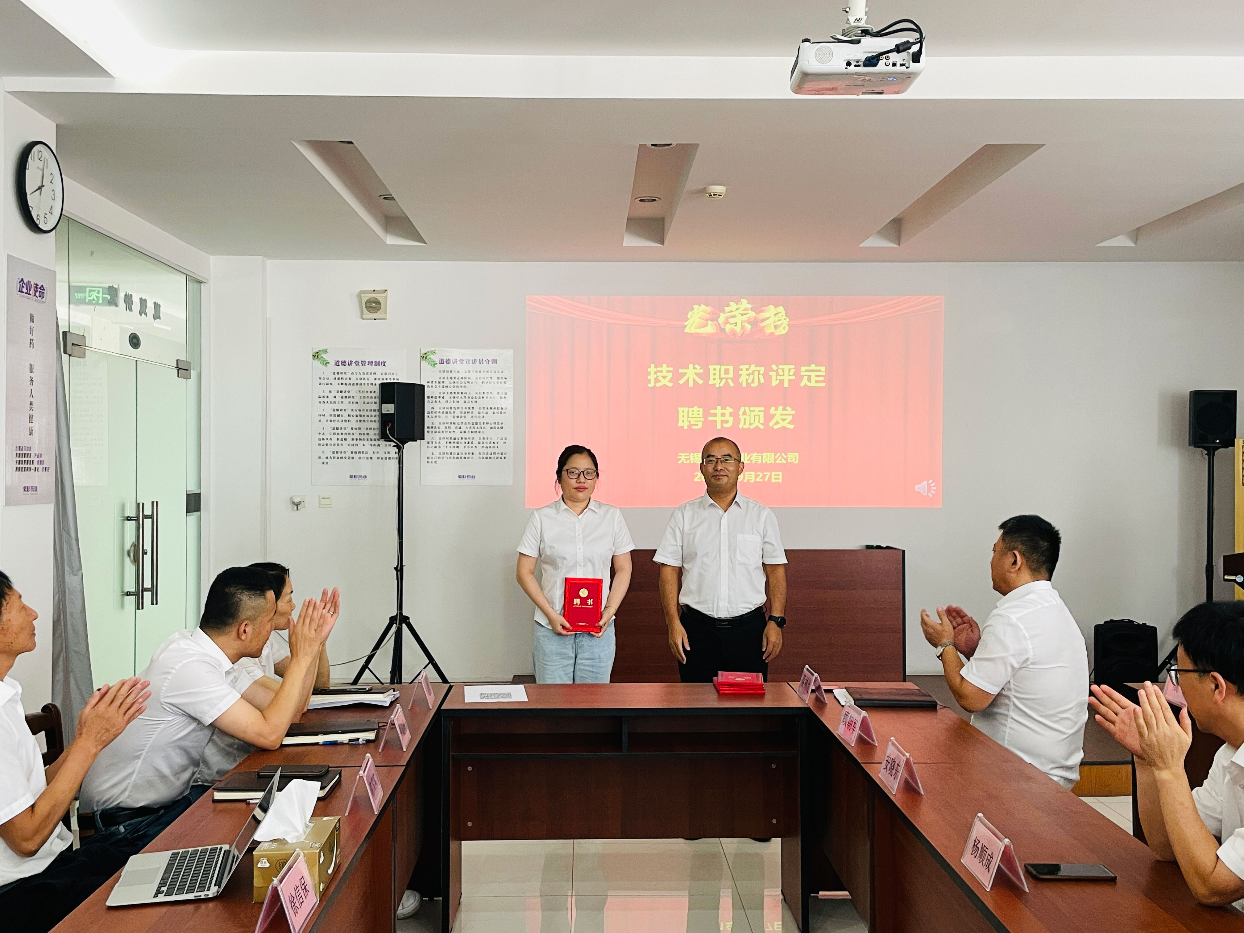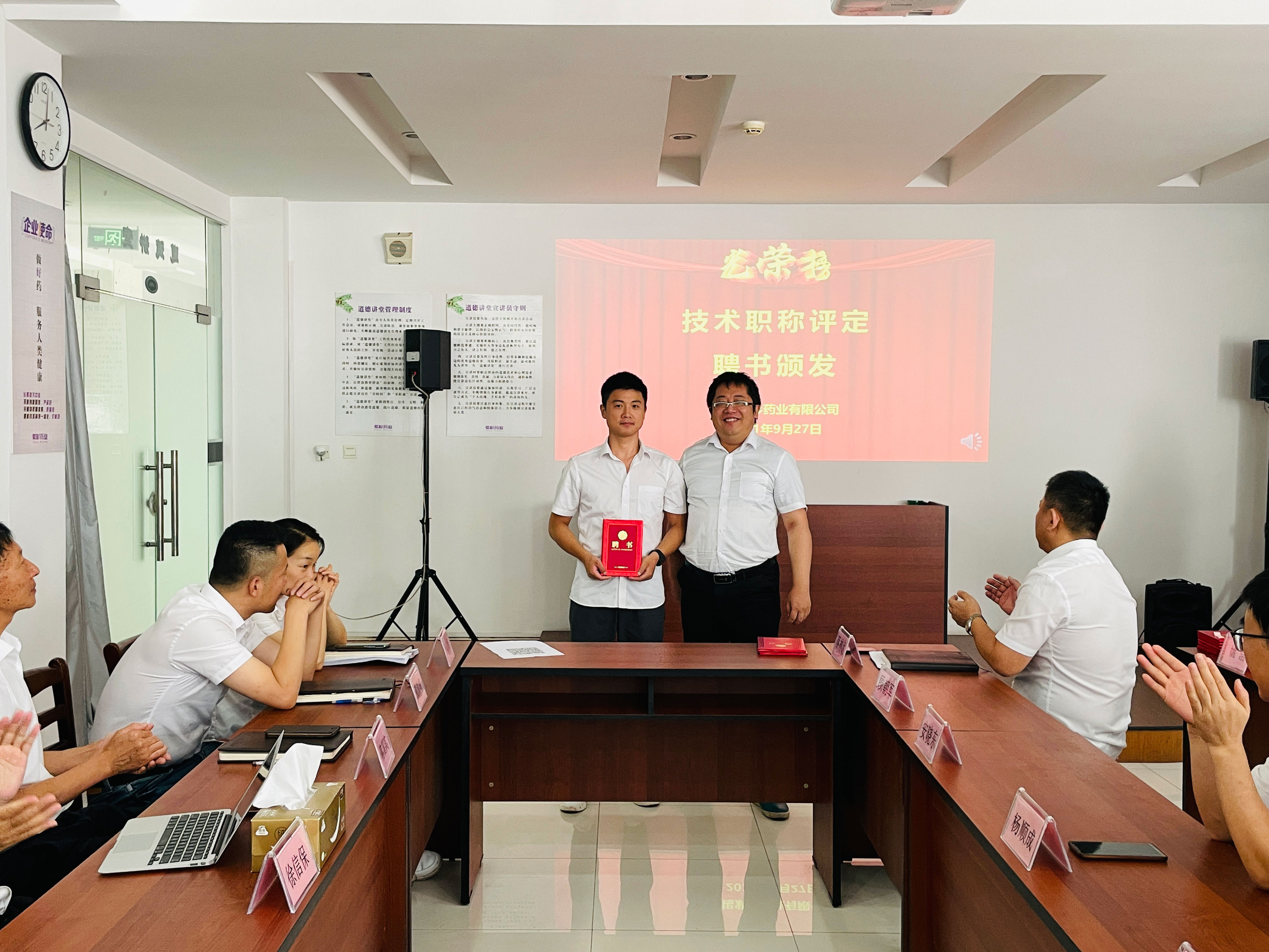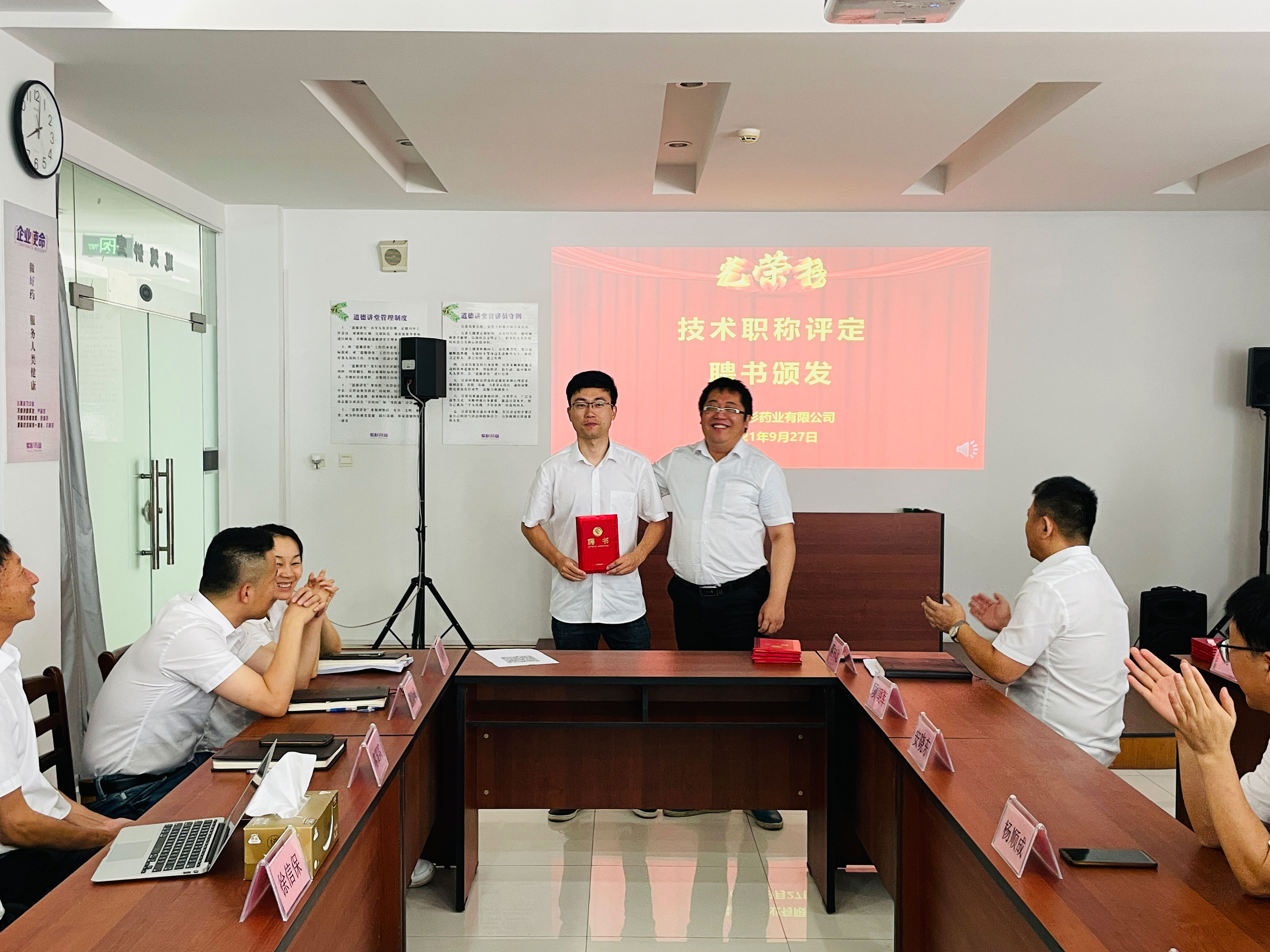 公司总经理徐信保、副总经理田连忠等领导对以上获得职称评定的优秀员工颁发了证书并表示祝贺!同时也鼓励其他员工向他们学习。