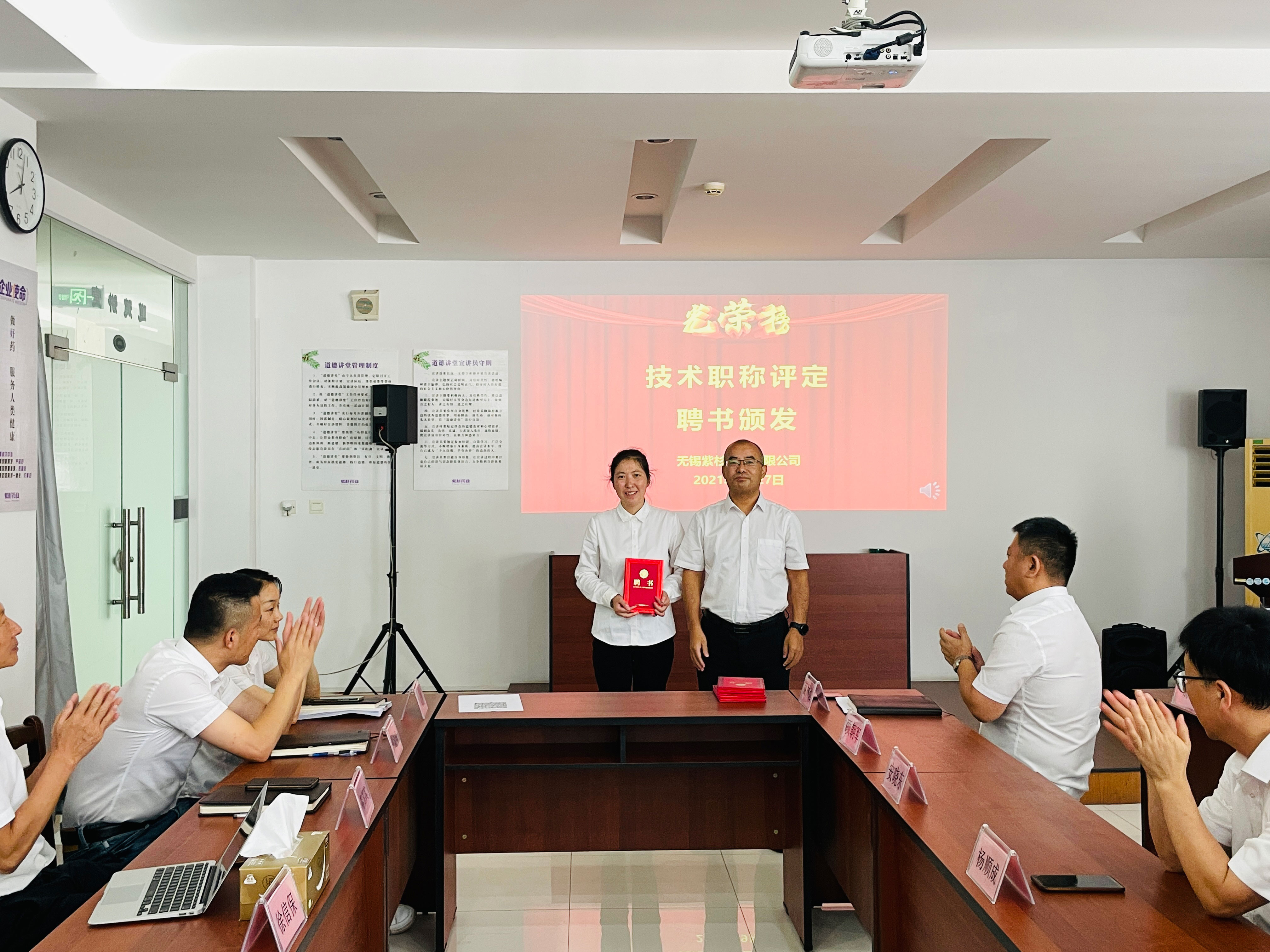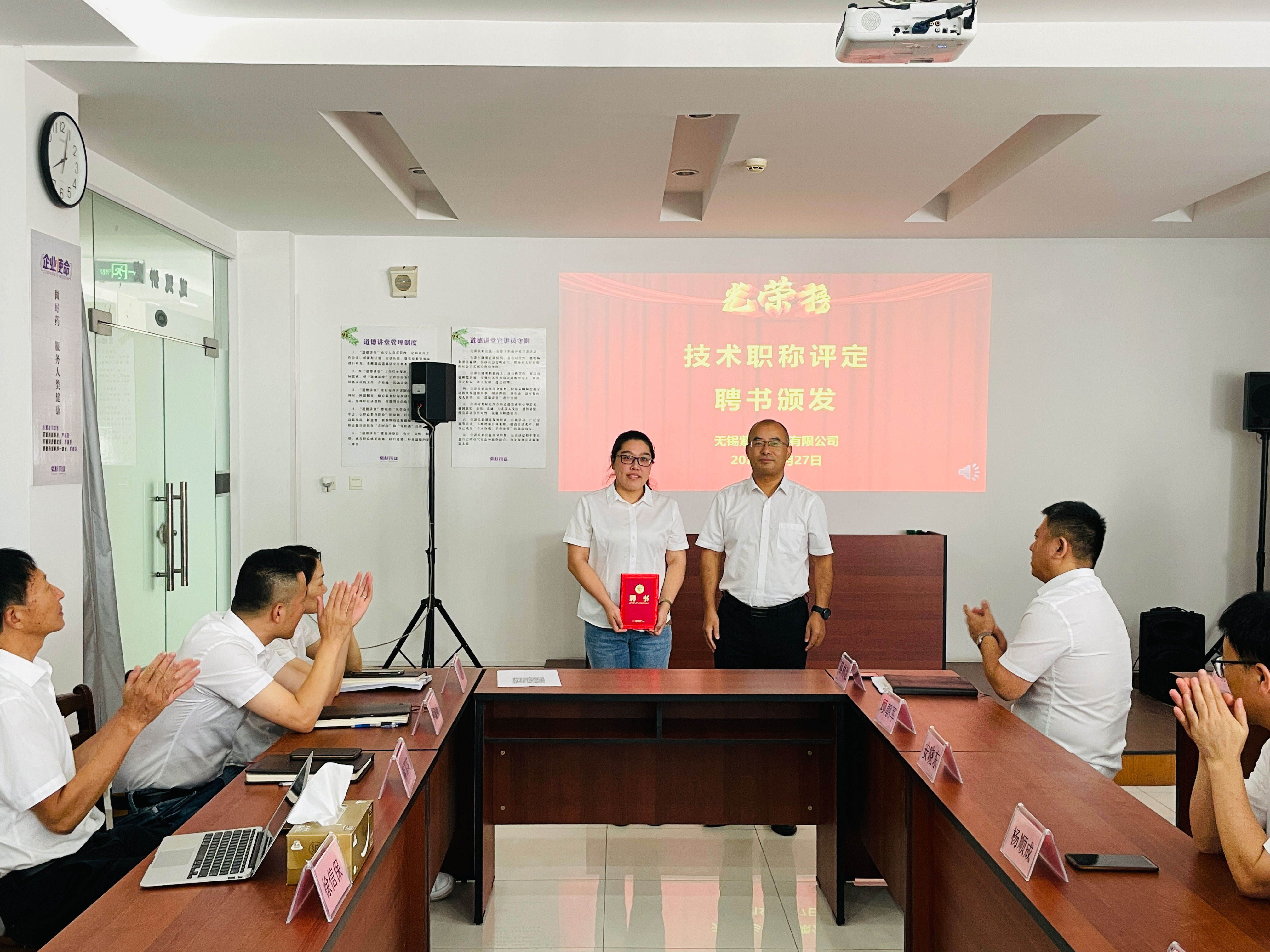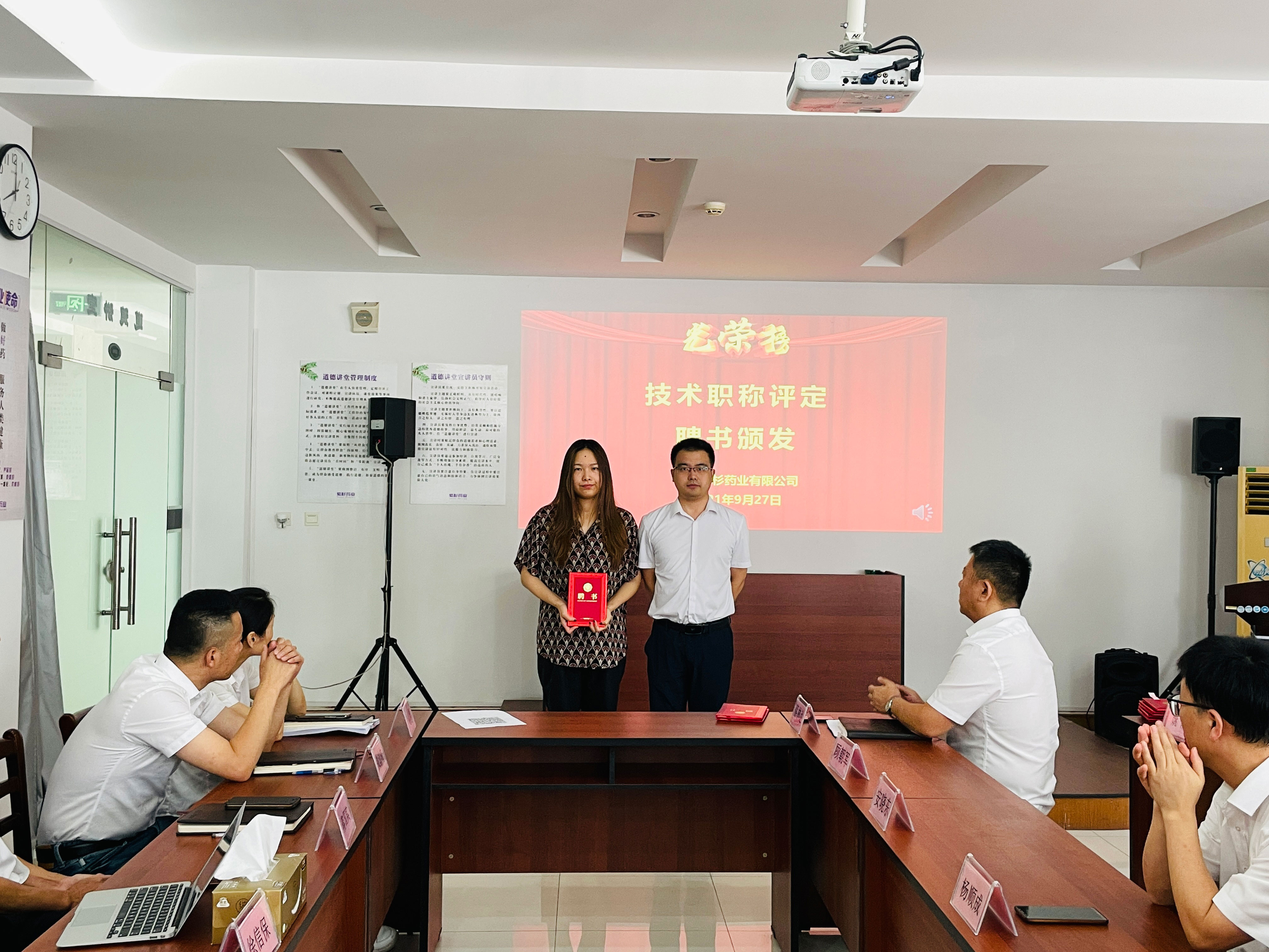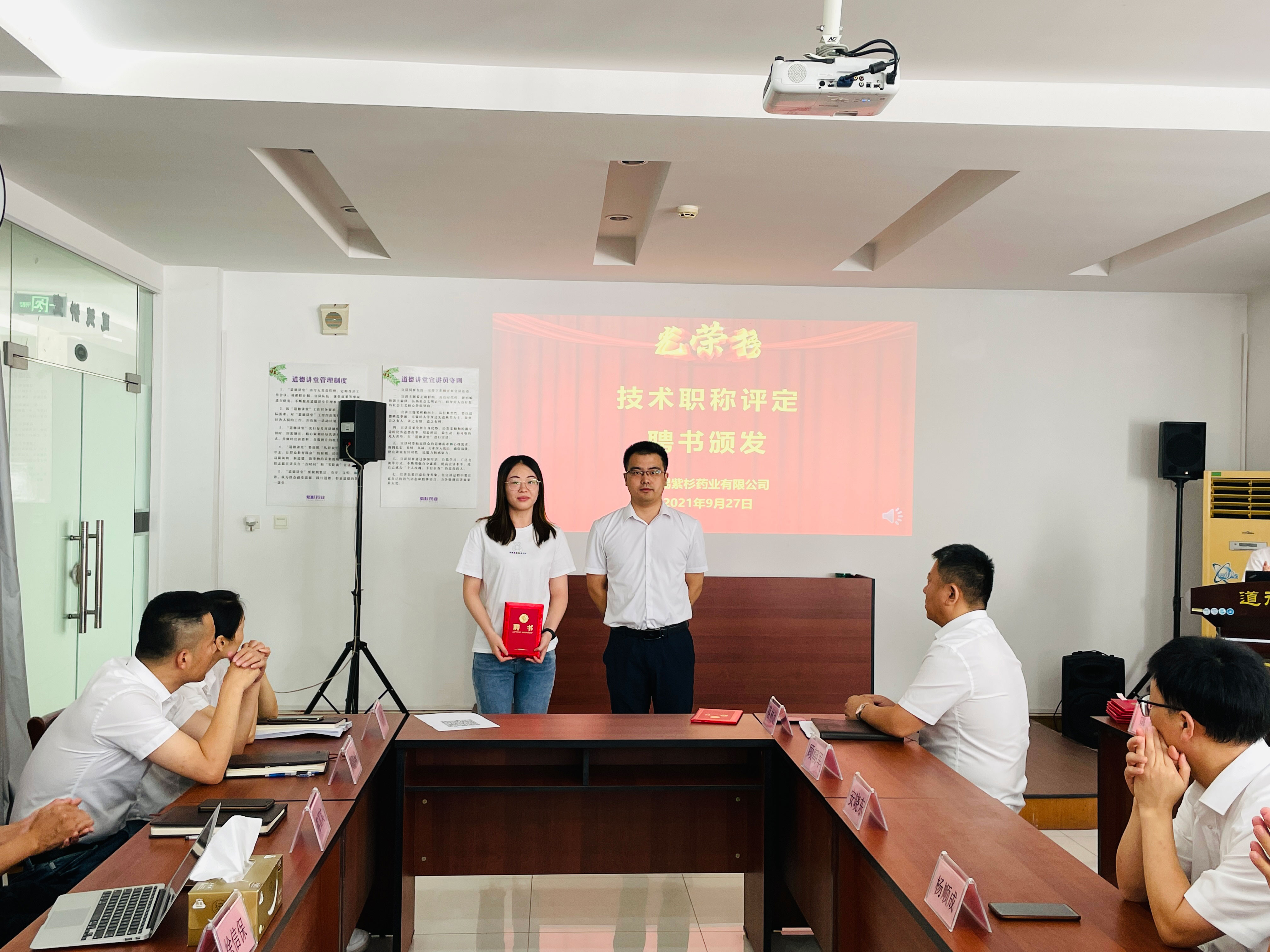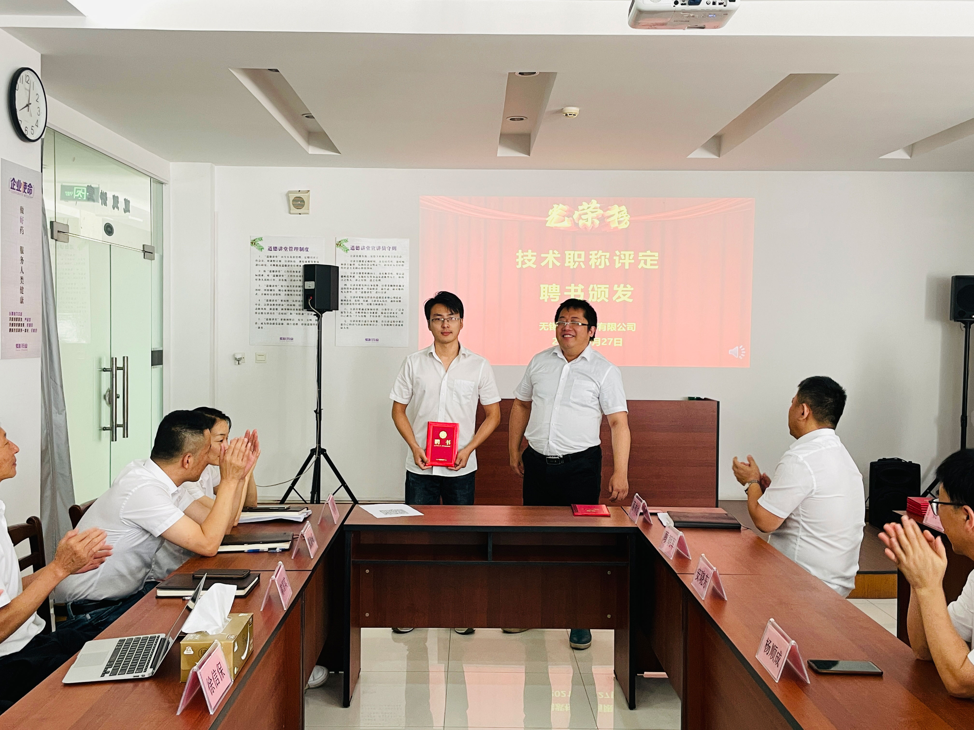公司总经理徐信保、副总经理田连忠等领导对以上获得职称评定的优秀员工颁发了证书并表示祝贺!同时也鼓励其他员工向他们学习。
